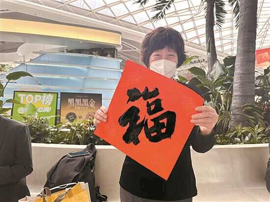 春运首日这天刚好在广州南站坐高铁,计划到武汉玩两天,然后就回河北。在南站候车时,见到这里举办书法家写春联送祝福的活动,我们请书法家写了一个“福”字,准备把“福”气带回家,也祝大家新的一年福气满满、万事如意。