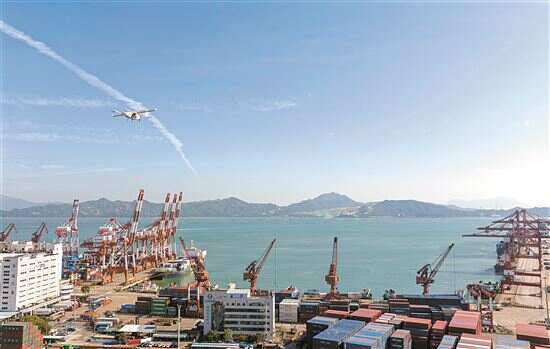 ■一架无人机搭载着快件从珠海飞抵深圳蛇口集装箱码头附近的起降点。(资料图)新华社发