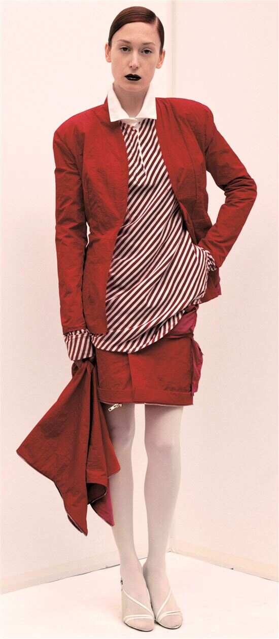 红色这种亮色在造型穿搭的使用当中,大面积渲染虽是热情典范,但若不施以小技巧很可能“变”成“灾难现场”,尤其是对黄皮肤的时髦精来说,“一半红”才是简单不费力的搭配思路。