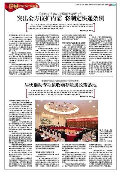 河源团谢秋菊代表认为,广东北部地区的发展对省内区域平衡发展十分重要。她建议加大财政资金扶持力度,向粤东粤西粤北倾斜,更好支撑这些地区的基础交通设施建设,服务与保障民生发展。