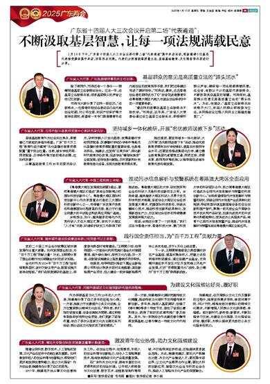 1月16日下午,广东省十四届人大三次会议举行第二场“代表通道”集中采访活动,现场邀请6位基层代表接受媒体集中采访,回答热点问题。代表们分别围绕高质量立法、县域基础教育、文化强省等内容进行分享。