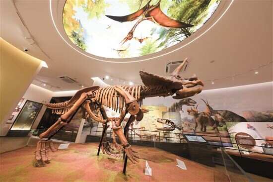 进入服务楼,楼内的“远古河源 恐龙故乡”专题展区设置恐龙蛋化石复制品展柜、恐龙骨架化石复制品展区、“与龙共舞”恐龙知识科普展区等多个展区,旅客来到服务区,还可以结合数字化多媒体、恐龙遗迹文创产品等,了解恐龙科普知识和恐龙遗迹文旅资源。