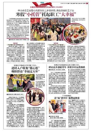 中山市总工会爱心托管班在三乡镇启动,惠及百名职工子女
