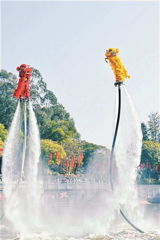 ■1月18日,广州莲花山内上演水上飞狮。 新快报记者 毕志毅/摄