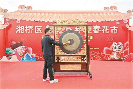 湘桥区委书记曾俊喜上台鸣锣,2025年湘桥区迎春花市正式开市。