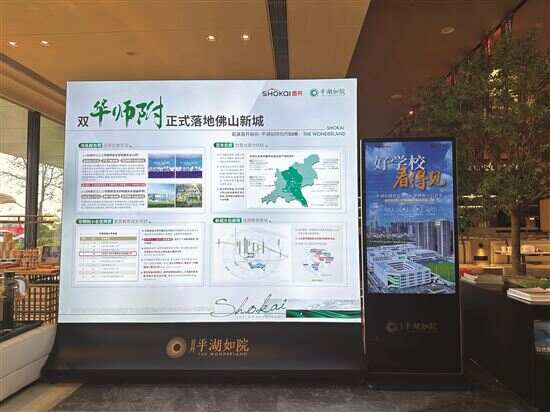 ■楼盘营销中心内宣传板显示,首开·平湖如院项目纳入华师附小招生范围。