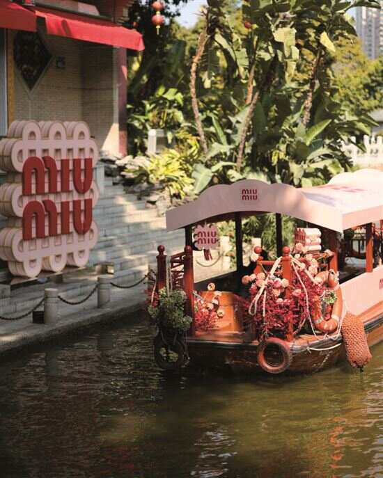 在广州,Miu Miu选择在美丽的荔枝湾,以“花船启航游”这一独具西关特色的“水上花道”拉开活动帷幕,寓意“顺风顺水”。而在花船的目的地,粉色装点的亭台楼阁内,花窗元素、美丽年花、西关小吃等西关元素也无处不在,让曲曲折折的回廊空间变得好玩又快乐。活动当天,品牌大使刘浩存与演员陈飞宇受邀出席现场,体验独特的西关风情。