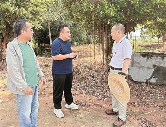 ■王炎章(右一)向当地种植大户了解种植情况。