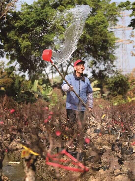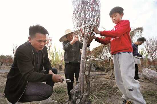 “喂,有货有货,你发个地址给我,我到时找人寄过去给你!”在广州市白云区均禾街石马联社,42岁的村民黎志裕正在接听一位客户的电话。春节临近,他不会放过任何一个打进来的电话,努力销售村里的桃树。