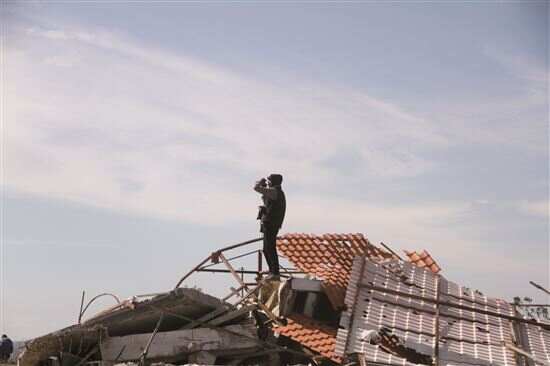 ■1月26日,一名男子在加沙地带北部等待亲人归来。新华社发