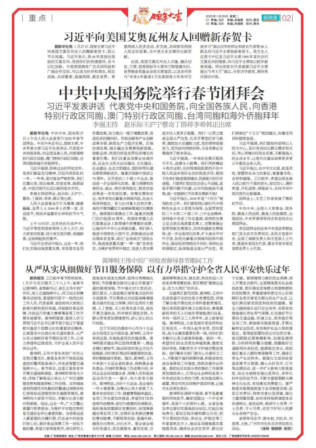 黄坤明王伟中到广州检查督导春节期间工作 从严从实从细做好节日服务保障 以有力举措守护全省人民平安快乐过年