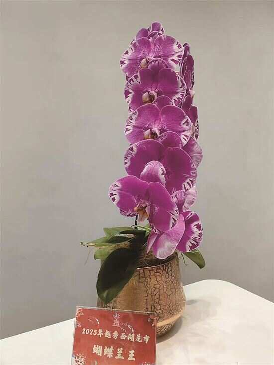 据介绍,在西湖花市169个档位中,专家们选出10个花卉品种,成为了花王:包括“龙兰蝴蝶兰”“菊花芦荟”“粉色玫瑰”“朱砂盆桔”“粉色百合花”“大花飞燕草”“吊钟花”“鸡冠花”“桃花”等,非常值得一看。