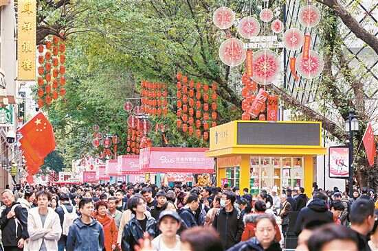■2月3日,广州北京路上人潮涌涌。广东多地依托景区景点、历史街区等场景,创新融入年俗文化元素,在提升目的地吸引力的同时有效促进消费。新快报记者 邓迪/摄