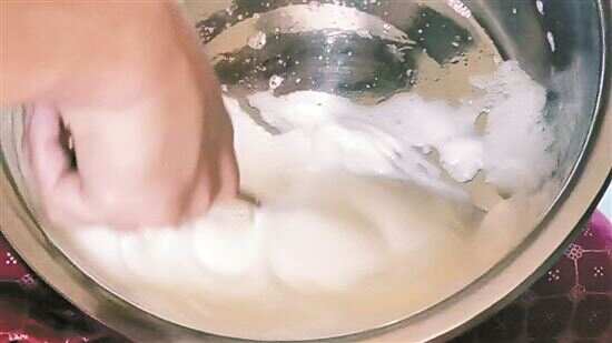 ■制作雪衣豆沙打蛋清的过程。