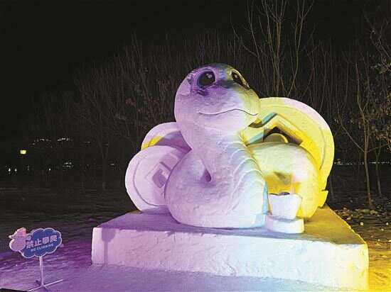 ■以蛇年生肖为主题的雪雕。