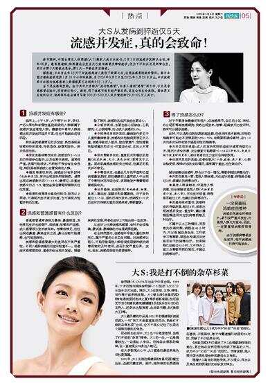 春节期间,中国台湾艺人徐熙媛(大S)携家人赴日本旅行,2月3日因流感并发肺炎去世,终年48岁。最新报道称,徐熙媛在出发当天已经有感冒及哮喘症状,但为了不扫兴还是照常出发,到日本第3天就被送急诊,第5天一早就在东京病逝。