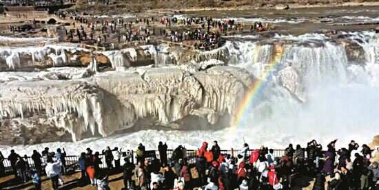 “我读过‘黄河之水天上来’这句诗,这次寒假和爸妈一起来看壶口瀑布,真是太壮观了,碰巧还看到了彩虹,果然不虚此行!听说壶口瀑布一年四季皆有美景,我计划放了暑假再来欣赏。”来自北京的游客张嘉楠说。