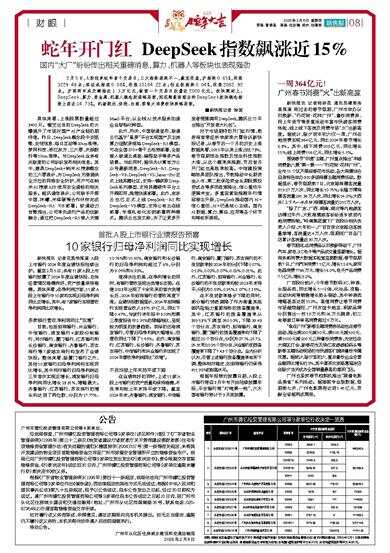 对于市场期待的开门红行情,前券商首席经济学家李大霄告诉新快报记者,从春节后一个月的历史上涨数据来看,2010年以来上涨占比73%,春节假期恒生指数及恒生科技指数大涨,从这个概率来推测,节后首月开门红也是胜率较高。中信建投策略陈果团队指出,节前推动中长期资金入市、第二批保险资金长期股票投资试点等多项政策推出,信心重估牛逻辑未变。多重因素助推跨年行情迎接主升段,DeepSeek推动国内AI+信心重估,AI+仍是核心主线。国内AI数据、算力、算法、应用等各个环节均将有所表现。