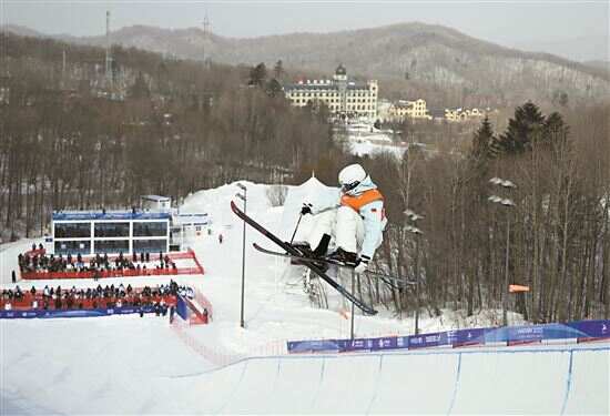 ■2月8日,在第九届亚冬会自由式滑雪女子U型场地技巧决赛中,中国选手李方慧获得金牌。新华社发