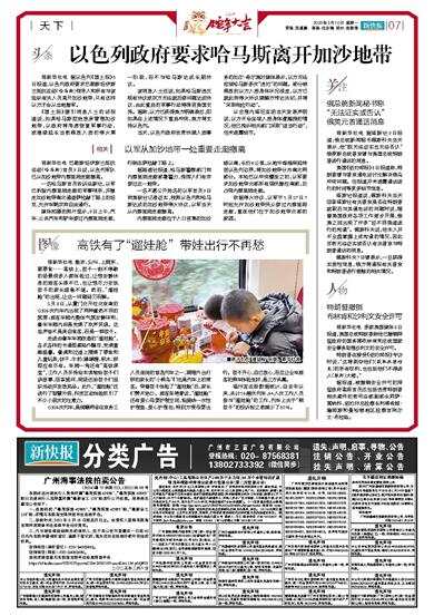 据新华社电 据以色列《国土报》8日报道,以色列政府要求巴勒斯坦伊斯兰抵抗运动(哈马斯)领导人和所有与该组织有关人员离开加沙地带,只有这样以方才会从当地撤军。