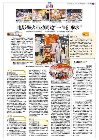 在线下,新快报记者探访广州多家联名品牌店,店员均表示哪吒相关周边库存告急或已售罄。某商场泡泡玛特门店的工作人员透露,《哪吒之魔童闹海》系列手办上架仅两天便售罄,店内仅剩展示样品,补货时间未定,许多消费者只能关注门店补货群等待最新消息。