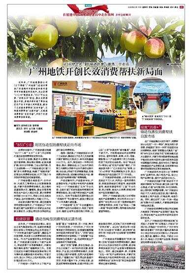 广州地铁将“五专”平台流量转化为消费产业的内在驱动力,构筑了面向全市、辐射全省和全国的推介网络,让山区“土货”快速走向“城市餐桌”、走进千家万户。万胜围地铁站布设消费帮扶专站,宣传百香果、刺梨、木耳、鸡蛋、蜡染等23个产业故事和7项工作举措,收到了良好的社会效果。结合“商业运作+帮扶公益”的农产品推广模式,广州地铁参与多个“亿元扶贫产业”培育,以“打call带货”和品牌赋能为主导,助力帮扶地农产品迅速打开了广州市场。