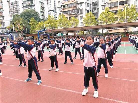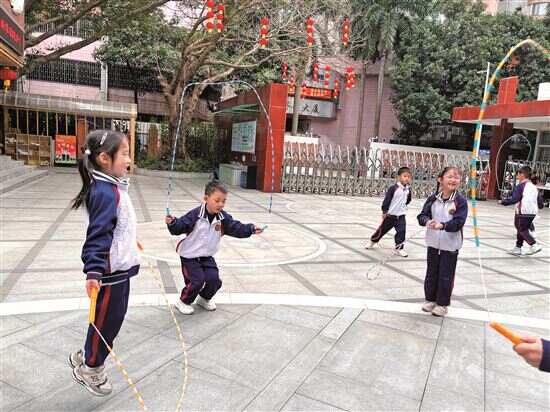 华阳小学党委书记陈丽霞告诉新快报记者,为帮助学生更好地达到校园体育2小时,学校在上午原有的35分钟“阳光大课间”基础上,下午增设25分钟“游戏大课间”,双时段开展多样化大课间活动。“大课间活动设计融合体能操、武术、体能练习、接力跑、跑操、跳绳、游戏等基础训练与趣味游戏,让学生在运动中强健体魄、提升运动技能。”陈丽霞说。