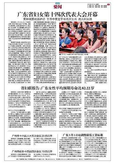 新快报讯 记者毛毛雨 曾贵真 通讯员粤妇宣报道 2月14日,广东省妇女第十四次代表大会在广州召开。会上,广东省妇女联合会第十三届执行委员会作报告,总结了过去五年的工作,并对今后五年全省妇联的工作思路进行规划。报告显示,广东妇女平均预期寿命达到82.22岁,孕产妇、婴儿、5岁以下儿童死亡率均达到世界发达国家水平。