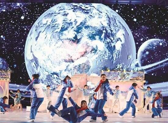 2月14日,演员在闭幕式上表演。当日,第九届亚洲冬季运动会闭幕式在哈尔滨举行。