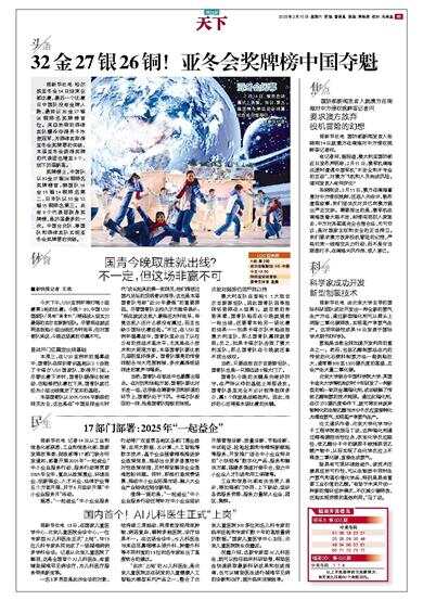 据新华社电 哈尔滨亚冬会14日结束全部比赛,最后一个比赛日中国队没有金牌入账,最终以32金27银26铜排名奖牌榜首位。来自热带的菲律宾队爆冷夺得男子冰壶冠军,为菲律宾取得亚冬会奖牌零的突破,本届亚冬会获得奖牌的代表团也增至9个,创下历届新高。