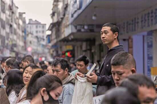 这边厢老黄还在寻觅更合适的机会,那边厢“90后”湖北人小张已经在街上招到了两个工人,只要再招3个人,他一天的招工KPI就算完成了。