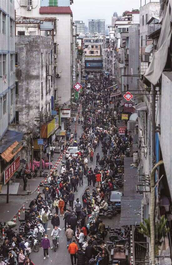 每年的正月十五前后,外地务工者来穗人数增多,广州海珠区制衣工厂都会迎来招工高峰期。2月13日早上九点,大塘村招工一条街便热闹非凡,制衣厂老板与求职者人头攒动。