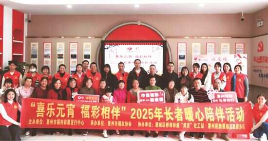 新快报讯 记者陆妍思 通讯员杨艳报道 为践行福利彩票“扶老、助残、救孤、济困”发行宗旨,让福彩公益理念和慈善文化更加深入人心,2月12日,惠州市福利彩票发行中心在“爱心福站”滨江店举办“喜乐元宵 福彩相伴”主题活动,为长者送上暖心陪伴。本次活动由惠州市福友协会承办,联动桥西街道“双百社工站”和民政福彩志愿服务队,与30位社区长者一起欢度元宵佳节,弘扬传统文化。