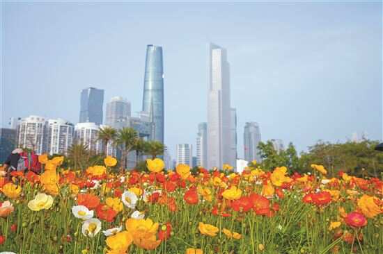 ■初春的广州,二沙岛宏城公园内,虞美人悄然绽放。花瓣轻盈如丝,色彩斑斓,从柔和的粉红到热烈的橙红,宛如一幅流动的油画。