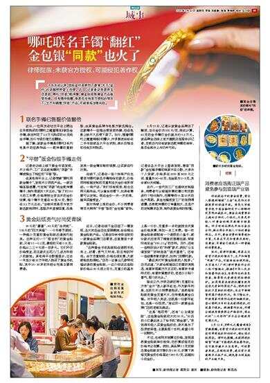 今年年初以来,国际金价不断创下新高,关于“金价”的话题频频登上热搜。近日,记者走访多家珠宝店发现,哪吒“同款”乾坤圈、黄金贴纸等黄金产品备受热捧。但有律师提醒,商家在没有官方授权的情况下,生产和销售“同款”产品,可能面临法律风险。