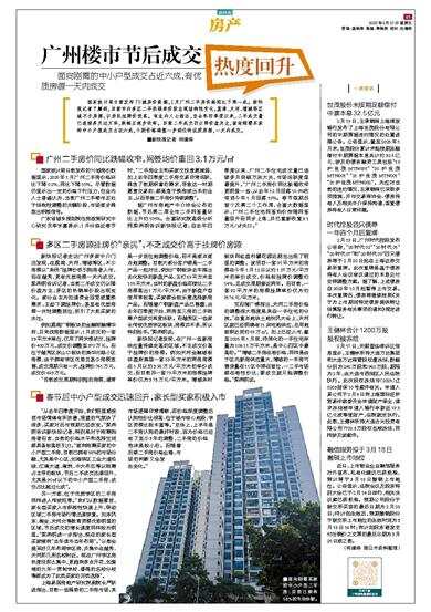 “从去年四季度开始,我们明显感受到市场情绪有所改善,观望的气氛淡了很多,买家对后市预期已经改变。”梁燕明告诉新快报记者,特别是对于刚需购房者而言,当前的价格水平和选择空间都具备较高吸引力。“面向刚需买家的中小户型二手房,目前已拥有58%的市场份额,尤其是中心区,如海珠区工业大道沿线、江南大道、南洲、中大布匹等以刚需占主导的板块,节后二手成交迅速回升,尤其是90㎡以下的中小户型二手房,成交占比超过七成”。