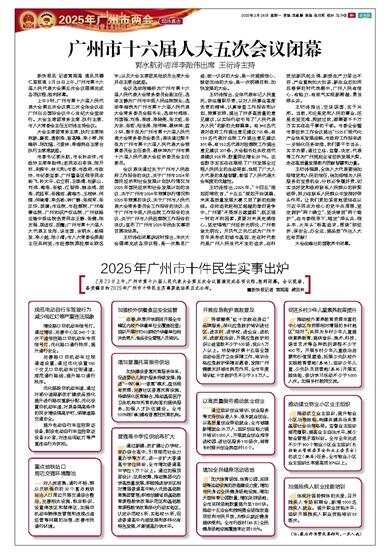 2月23日上午,广州市第十六届人民代表大会第五次会议圆满完成各项议程,胜利闭幕。会议现场,备受瞩目的2025年广州市十件民生实事票选结果正式公布。