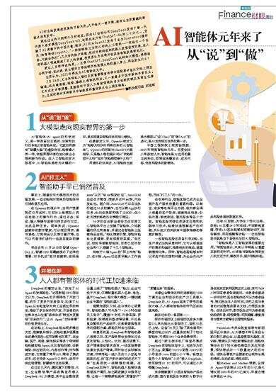 就在过去的不到两个月时间里,国内AI初创公司DeepSeek发布了新一代开源大语言模型DeepSeek-V3,训练成本只有ChatGPT-4o的二十分之一,贡献了AI竞赛中的中国力量;随后,AI巨头OpenAI发布了名为Operator(操作员)的智能体(agent),“一种能够独立为你工作的人工智能——你给它一个任务,它就会执行”;几天后的除夕春晚,杭州宇树科技的机器人表演技惊四座,在人形机器人领域掀起了巨大的波澜,投资界认为其将开创具身智能发展新纪元。