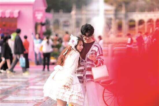 洛丽塔装扮的女子,打卡云台花园。