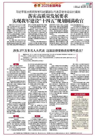 8日上午9时,十四届全国人大三次会议在人民大会堂举行第二次全体会议,听取全国人大常委会委员长赵乐际关于全国人民代表大会常务委员会工作的报告,听取最高人民法院院长张军关于最高人民法院工作的报告,听取最高人民检察院检察长应勇关于最高人民检察院工作的报告。