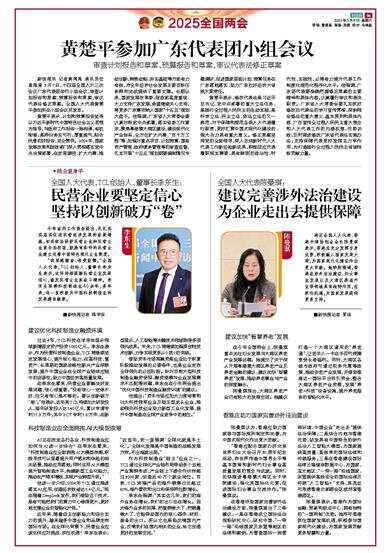 新快报讯 记者黄闻禹 通讯员任宣报道 3月7日,十四届全国人大三次会议广东代表团举行小组会议,审查计划报告和草案、预算报告和草案,审议代表法修正草案。全国人大代表黄楚平参加所在小组会议并发言。