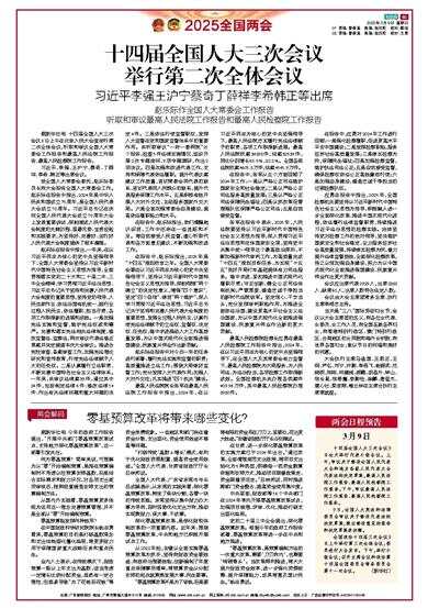 全国政协十四届三次会议9日上午举行第三次全体会议,委员进行大会发言。下午,举行小组会议;召开主席会议和政协第十四届全国委员会常务委员会第十一次会议。(新华社)