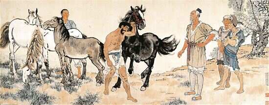 1947年,我在书店看到了一本徐悲鸿的画册,从此,我就知道了中国有一位大画家叫徐悲鸿,里面有一幅作品是他画的马,所以,我还专门临摹过,并参加了中学举办的学生展览。
