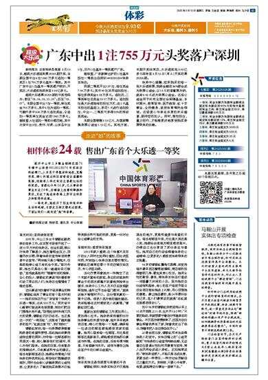 据核查,广东新鲜出炉的1注基本投注一等奖出自深圳4402002804体彩实体店。