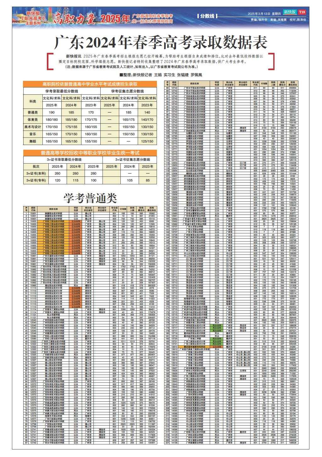 广东2024年春季高考录取数据表(1)