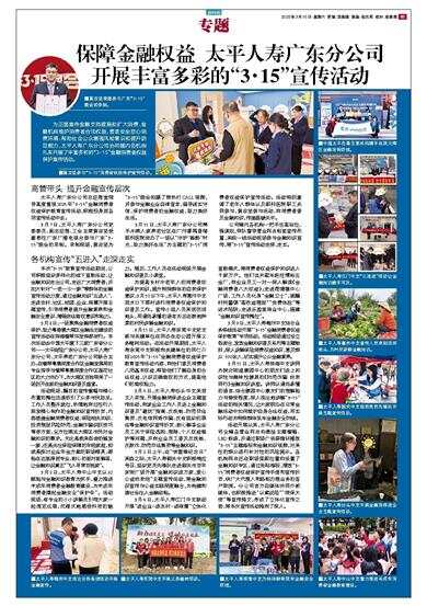 为正面宣传金融支持提振和扩大消费、金融机构维护消费者合法权益,营造安全放心消费环境,帮助社会公众增强风险意识和提升防范能力,太平人寿广东分公司协同辖内各机构扎实开展了丰富多彩的“3·15”金融消费者权益保护宣传活动。