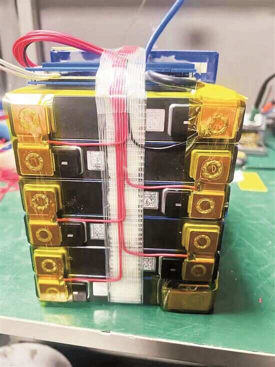 最后,在军哥的介绍下,记者以1680元的价格在其徒弟阿斌(佚名)的店内,订购了一块48V40Ah的拆机三元锂电池,阿斌承诺质保两年。当记者提出想看看是怎么制作的,阿斌警惕地表示,“电池的焊接等多道工序需要在别处进行,那边都不给去,会查的。”随后,他便到另一处场地开始组装电池,不久便向记者发来了挑选、组装电池以及焊接的视频。视频中,阿斌将拼装好的电池组放置在台面,当自动激光焊机对着电池组上的铜片进行焊接时,焊接处迸射出了火花。随后,阿斌又将电池拎到店里做最后的组装。历经4个小时,记者终于拿到了拼装完成的锂电池,并安装到电动自行车上,经测试可以使用。