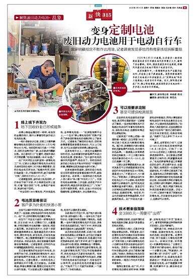 在实际操作中,一条隐秘的灰色产业链仍在运作,并在线上线下渠道流通。退役的新能源汽车动力电池经小作坊组装后,以“定制电池”的名义违规流入电动自行车市场。近日,新快报记者在广州、佛山等地调查,起底退役动力电池如何一步步进入电动自行车领域。