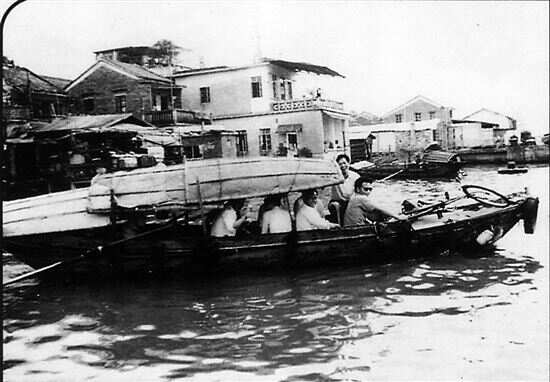 ▲20世纪50年代以前,都是靠渡夫划渡的木质小船,一般可载客六至八人,小的只能载客二至三人。