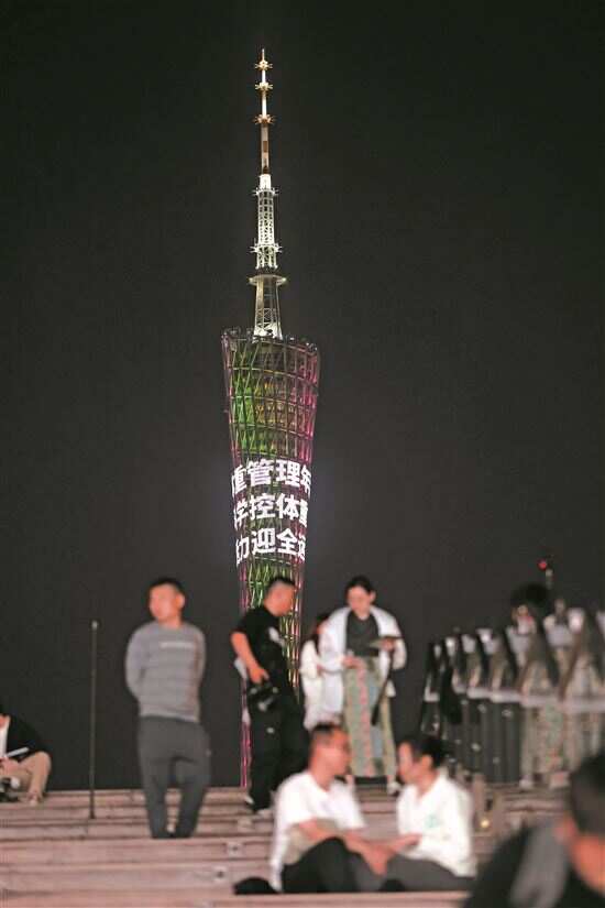 ■3月22日,“小蛮腰”化身巨型健康宣言墙,“广东体重管理年 科学控体重 活力迎全运”的字样在600米高的塔身上流转。新快报记者 观显锋/摄